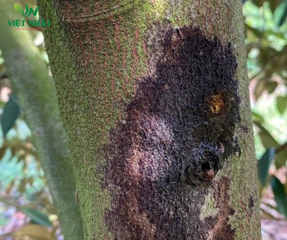 Như bà con đã biết, sầu riêng là giống cây trồng dễ bị ảnh hưởng bởi bệnh nứt thân xì mủ. Nấm Phytophthora sẽ tấn công trực tiếp vào thân, rễ rồi gây tiết mủ màu vàng hoặc nâu, thường mủ sẽ kèm theo mùi hôi. Ở vùng thân, vỏ sẽ bị bong tróc, thân bị thâm đen còn rễ cây sẽ dễ bị thối.