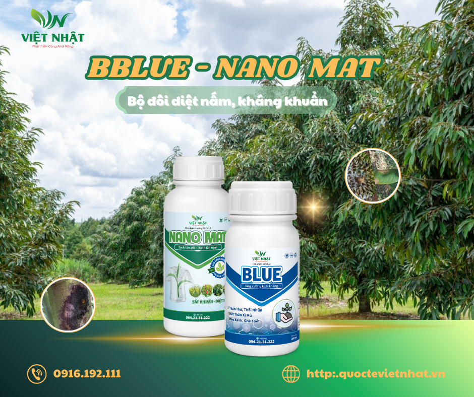Ngoài ra, để tăng hiệu quả diệt nấm, kháng khuẩn, bà con cũng có thể sử dụng kết hợp BLUE với NANO MAT. Bộ đôi hoàn hảo trong điều trị nứt thân, xì mủ ở cây.