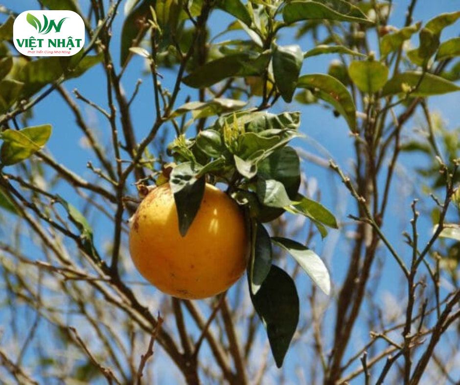 Hình 1.3: Quả bưởi bị bệnh nứt thân, xì mủ nên vàng úa, dễ bị rụng