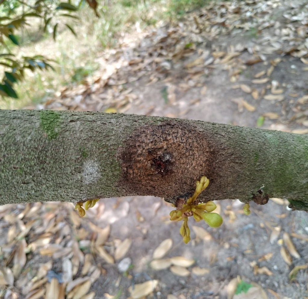 Cây sầu riêng đang bị xì mủ và khô