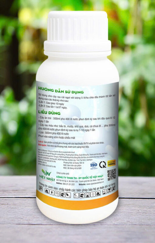 Cây ăn trái: Pha 500ml sản phẩm vào 400 lít nước, phun sau khi đậu trái và trước thu hoạch 10–15 ngày.